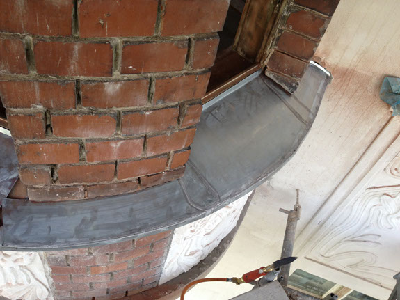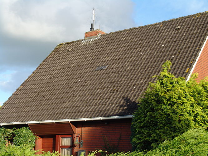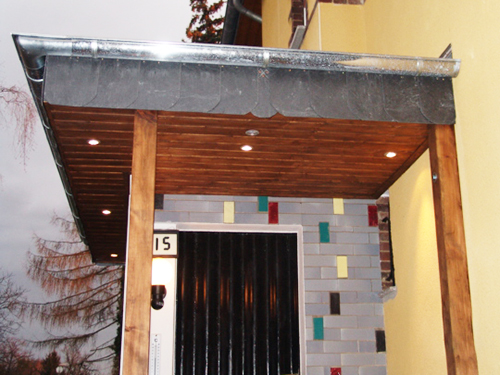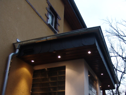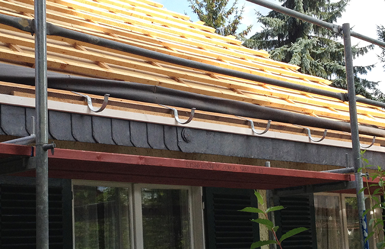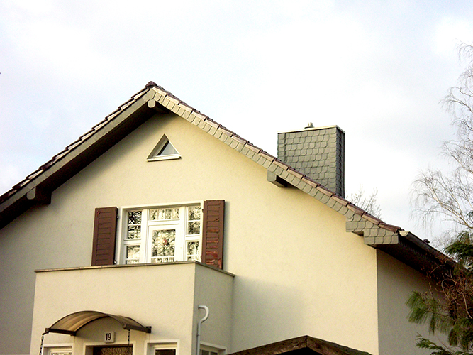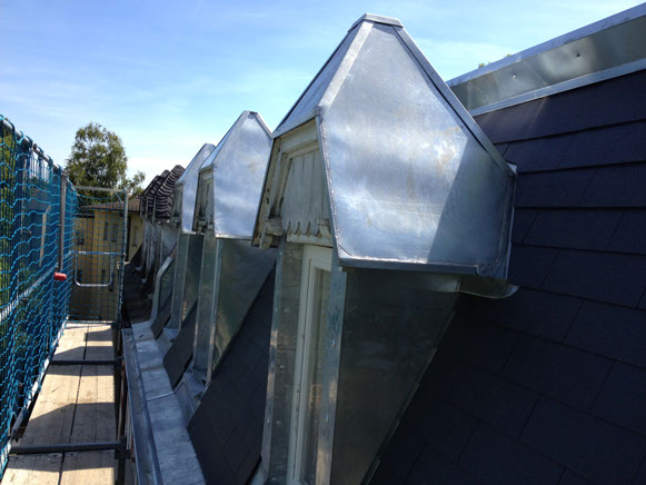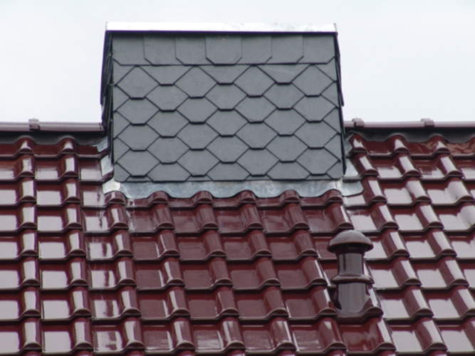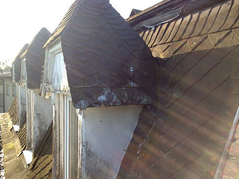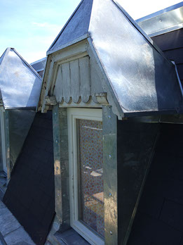 Die Schieferverkleidung der Gauben wurde durch Titan-Zink-Bleche ersetzt.